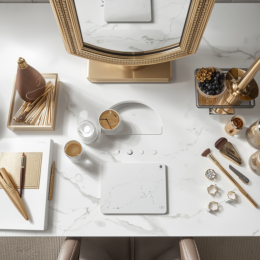 Developing comprehensive color palettes that exude luxury. We map out the exact ratios of pearl, rose, and gold to ensure striking brand consistency and soft visual presence.